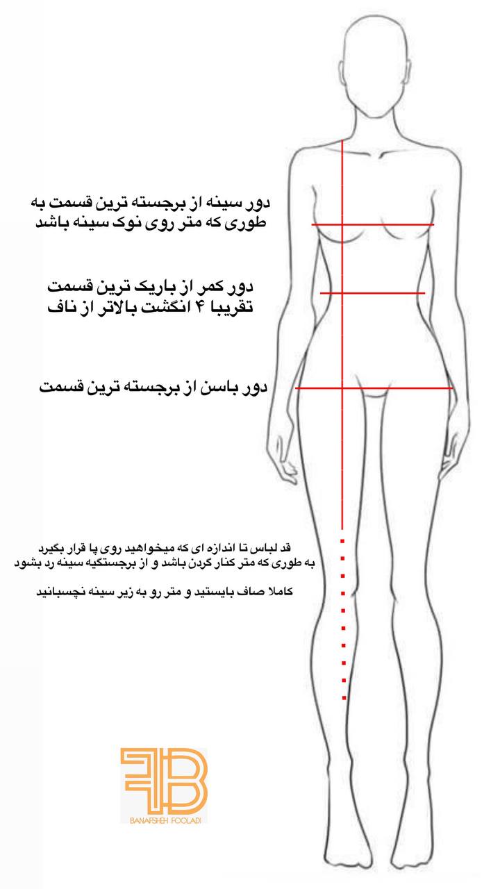 برای ثبت سفارش حتما سایزتون و طبق عکس راهنمای اندازه گیری اندازه دور کمر و دور باسن در قسمت توضیحات ذکر شود