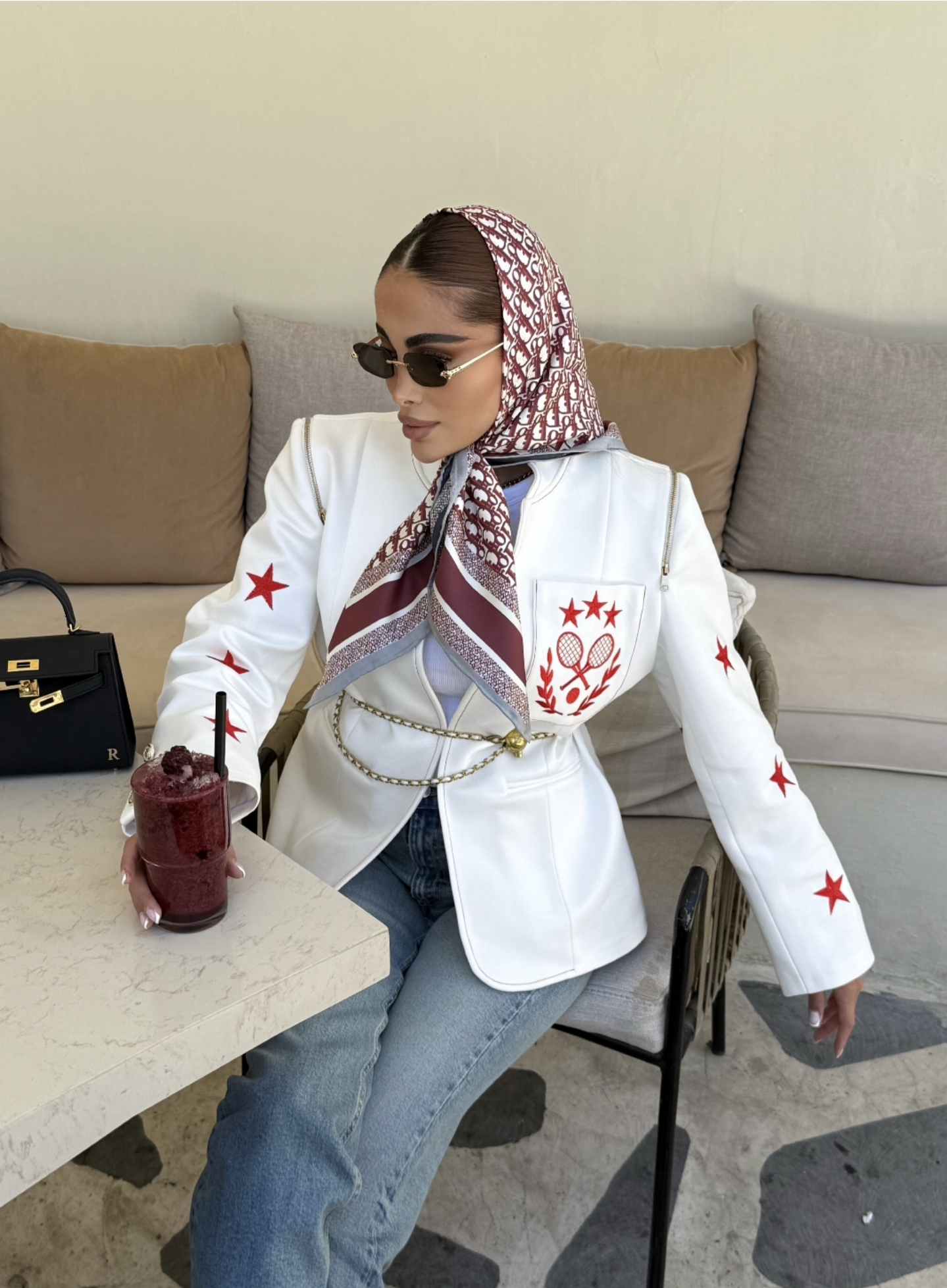 سفید با گلدوزی قرمز